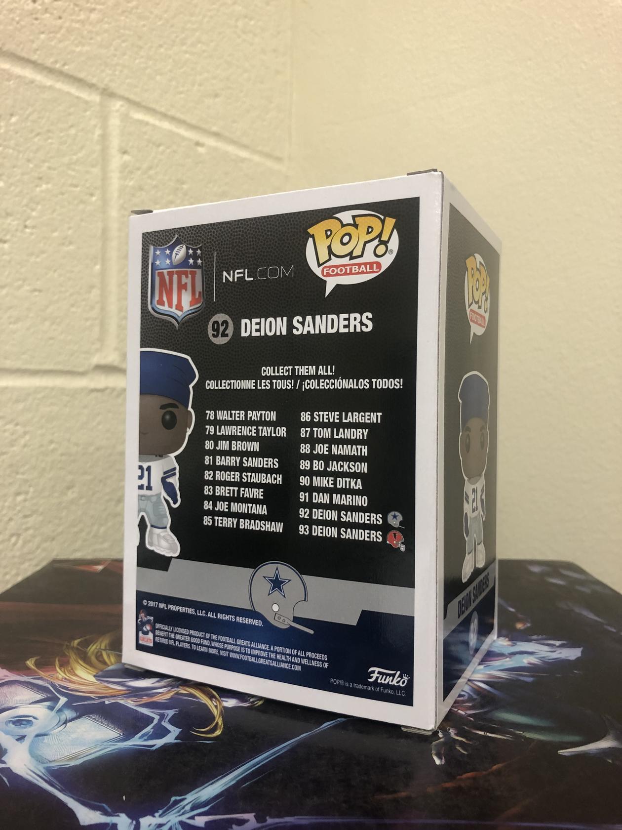 - From the NFL, deion Sanders (Cowboys home), as a stylized pop vinyl from Funko!