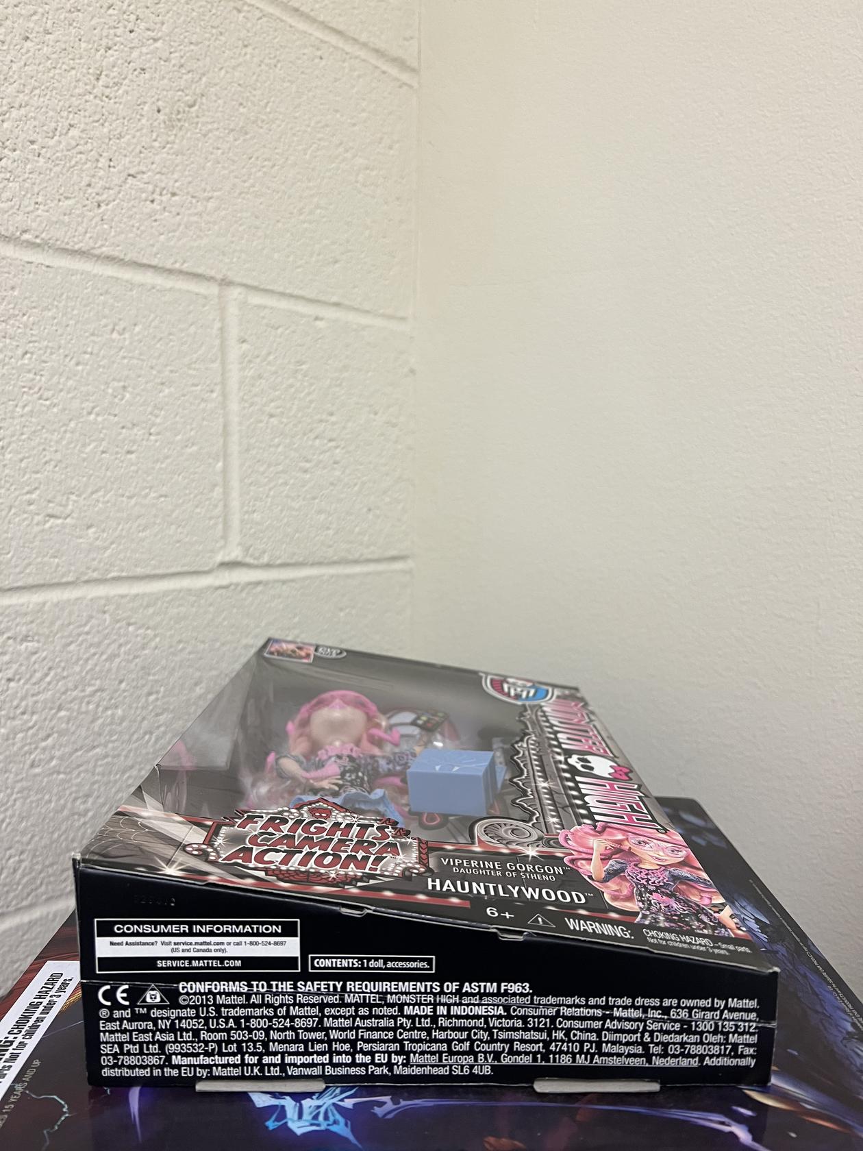 Product Description Viperine Gorgon is makeup artist to the ghouls of Hauntlywood. She accessorizes with a snake headband and pink sunglasses. Platform boots are just part of her spooktacular style. Frights, Camera, Action! In this scary cute story, the ghouls of Monster High embark upon a quest that brings them from Transylvania to Londoom to New Goreleans and, finally, to Hauntlywood, where monster-movie magic is made! Here, they meet new characters and make new friends, whom they join behind the scenes, in front of the cameras and on the Black Carpet. Viperine Gorgon, daughter of Stheno (the sister of Medusa) and cousin to Deuce Gorgon, is a regular in the new cast. With the nest of viper snakes poking out from below her fangtastic pink hair, she’s the most monstrous multi-tasker. Makeup Maestro The makeup maven to the “mon-stars,” Viperene Gorgon brings out everyone’s “un-natural” beauty with a color palette and makeup brush that she can hold in her hand. The palette has eight brilliant colors that will spark the imagination of Viperine, who loves to swirl them together. Her favourite color is shimmery gold and pink, after all. Store the palette and the brush in Viperine’s pink makeup box that doubles as a spooktacular handbag and portable “mirror. ” The top opens and closes to reveal a decaled vanity so Viperine can keep her clients always looking their scariest. Fangtastic Fashion Viperine doll is a showstopper herself dressed in a boho chic black dress with flowery feminine print and a blue ruffle hem. Her frightful accessories are made even more killer with viper details, like snakes on the top of her tall pink platform boots, wrapped around her head as a headband or swirling around her neck as a “ssstatement” necklace. Pink-tinted sunglasses are a final fashion touch, because, unlike her cousin Deuce Gorgon, she doesn’t turn people off by turning them to stone. Monster Play Girls will love recreating favorite Viperine scenes from the series or “making up” new stories on their own. Like her counterparts, the doll comes with a signature-style brush (those vipers love to tangle!), doll stand (to strike extreme poses) and a diary (with details the tabloids would love). Collect other dolls in the assortment, like Honey Swamp, Elissabat and Clawdia Wolf (sold separately), for a full behind-the-screams cast or add accessories that include a dressing room and a premiere party set (also sold separately) to expand the fun to monster proportions. Features: Viperine Gorgon, a girlie gorgon girl from Barcelgroana, is a new character from the Hauntlywood cast. She comes with a color palette and makeup brush that can be held in her hands. Store them in her pink makeup box that doubles as a spooktacular handbag. Fangtastic accessories complementing her boho chic outfit include viper-tipped tall boots and pink-tinted sunglasses. Doll also comes with signature-style brush, doll stand and diary. From the Manufacturer The ghouls have made it to Hauntlywood! With their freaky fabulous styles, these new stars are set to top the fear charts with a Black Carpet fashion show! Viperine Gorgon, a girlie gorgon girl from Barcelgroana, can turn the creepiest character into the most boo-tiful "mon-star" with her rockin' make-up skills. This artist gives monster makeovers with her color palette and makeup brush (that she can hold in her hand). Store them in her stone-cool blue makeup box that doubles as a spooktacular handbag. It looks killer alongside her sweet dress with its feminine print and girly ruffle hem. An reptilian necklace, tall pink boots, heart-shaped sunglasses and a fangtastic pink hairdo complete her snake-ishly mesmerizing look. Doll also comes with signature-style brush, doll stand and diary detailing details the tabloids would love. Frights, Camera, Action! Doll cannot stand alone.